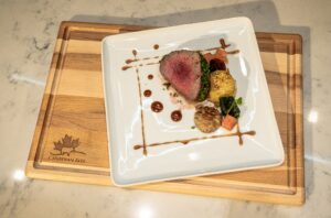 Embark on a culinary journey with our Pan-Roasted Beef Tenderloin Steak adorned with Mini Pommes Anna, Elmira Maple Syrup, Sumac Berries, Verjus Glaze, and Prune-Port Reduction—a testament to the rich tapestry of Canadian flavours and the vibrant hues of fall. Aspiring chefs redefine Canadian cuisine by harmonizing diverse ingredients, with the exquisite Canadian AAA Beef taking center stage. Immerse yourself in the symphony of New Canadian Flavours, where each bite not only celebrates tradition with a modern twist but also captures the essence of fall with seasonal colours and vegetables.[/vc_column_text][/vc_column][/vc_row][vc_row][vc_column][vc_column_text]